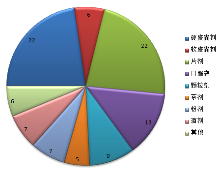 第三部分保健食品监督管理一、保健食品生产企业许可情况2018年上半年,全省共有保健食品生产许可证42家,其中胶囊剂硬胶囊剂22家,软胶囊剂6家,片剂22家,口服液13家,颗粒剂9家,茶剂5家,粉剂7家,酒剂7家,其他6家。详见附表3。 图3-1-12018年上半年保健食品生产许可分布图