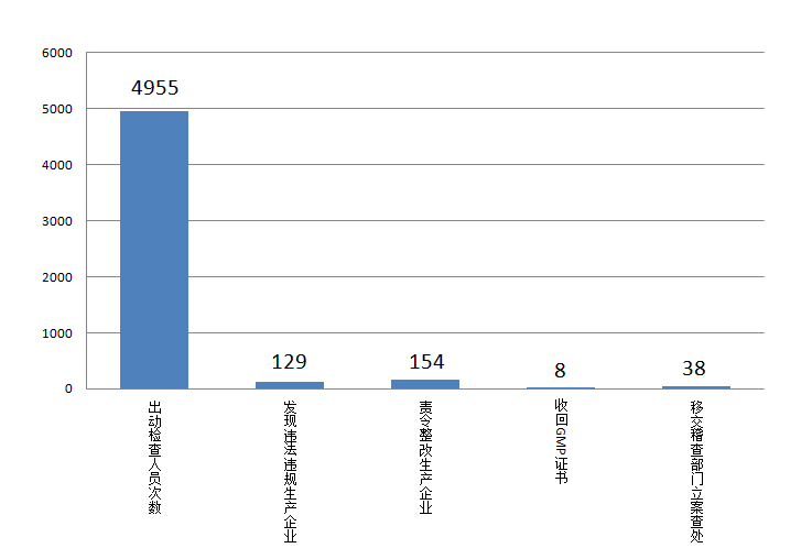 四、药品经营企业情况2018年上半年,全省期末实有企业数量30089家(其中生物制品7301家,专营中药材、中药饮片64家),本期新增2718家,本期减少2108家。 五、药品日常监管情况(一)药品生产企业日常监管情况2018年上半年,全省共检查生产企业1465家次,其中基本药物生产企业666家次,血液制品、注射剂等高风险品种生产企业126家次。出动检查人员4955人次,发现违法违规生产企业129家次,责令整改生产企业154家次,收回GMP证书8张,移交稽查部门立案查处38家。 图4-5-12018年上半年全省药品生产企业日常监管情况 (二)药品经营企业日常监管情况2018年上半年,全省共检查药品经营企业39835家次,其中批发企业1995家次,零售企业37840家次;存在违法违规的经营企业3632家次,其中批发企业243家次,零售企业3287家次;完成整改的经营企业3056家次,其中批发经营企业221家次,零售企业2835家次;撤销GSP证书89张,其中批发企业3张,零售企业86张;移交稽查部门立案查处549件,其中批发企业15件,零售企业534件。详见附表9。 图4-5-22018年上半年全省药品经营企业日常监管情况