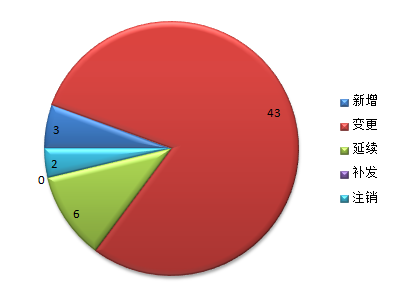 AG百家乐娱乐生产许可证本期新增3件,变更43件,延续6件,补发0件,注销2件,期末实有237件。 图5-2-12018年上半年全省AG百家乐娱乐生产企业许可证情况