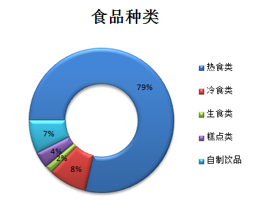 (三)事业单位人员情况2018年上半年,全省食品药品监管系统事业单位共有编制数14269人,实有在岗人员11135人,其中聘用人员838人。 第二部分食品监督管理一、食品监管许可情况 (一)食品经营许可情况2018年上半年,全省共有食品销售经营主体438476个(其中互联网经营5657家),餐饮服务经营主体245552家(其中内设中央厨房631家,集体用餐配送单位181家,互联网经营3551家),单位食堂39429家(其中学校食堂24811家),经营预包装食品销售418899家,经营散装食品销售157442家,特殊食品销售107426家。 食品流通许可证数量(旧)303014件,餐饮服务许可证数量(旧)187641件,有效许可证数量总和1214112件。 按食品种类划分,热食类食品制品284844家,冷食类食品制品31021家,生食类食品制品6299家,糕点类食品制品13119家,自制饮品销售27054家。 图2-1-12018年上半年全省食品流通环节分布图
